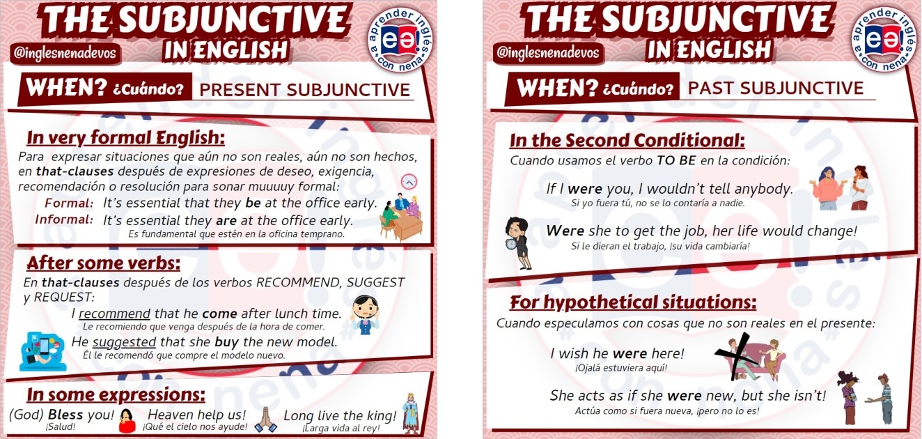Sólo existen dos tipos de subjuntivo en inglés: PRESENT & PAST SUBJUNCTIVE. Vamos a ver cada uno de ellos.